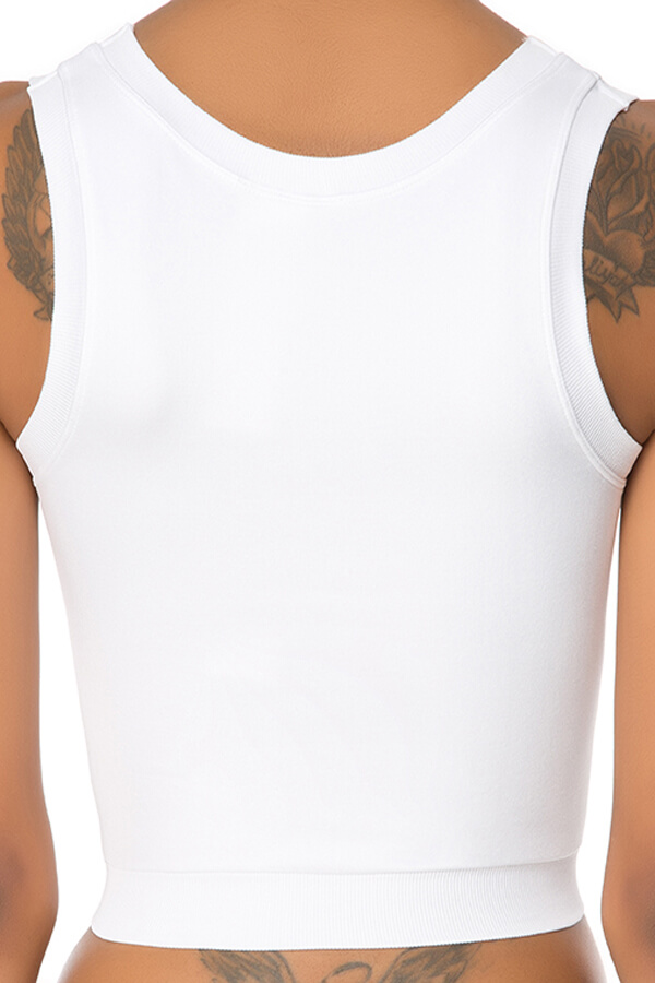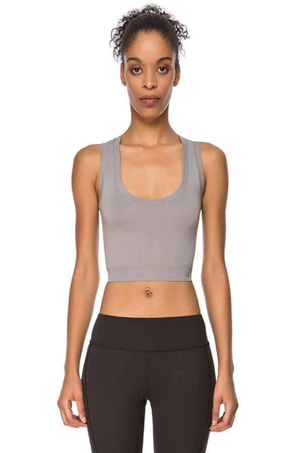 *Yuvarlak yaka, kalın askılı, düz renk sporcu bustiyeri.